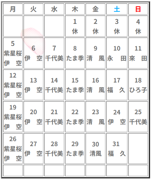 木曜日(固定)
